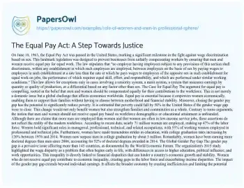 The Equal Pay Act: A Step Towards Justice. (2021, May 14). Retrieved from https://hub.papersowl.com/examples/role-of-women-and-men-in-professional-sphere/