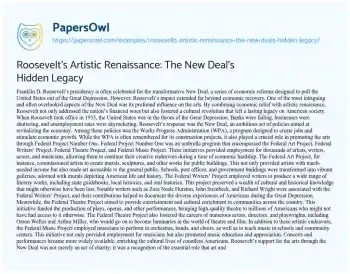 Roosevelt’s Artistic Renaissance: The New Deal's Hidden Legacy. (2024, Jun 17). Retrieved from https://hub.papersowl.com/examples/roosevelts-artistic-renaissance-the-new-deals-hidden-legacy/