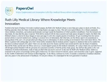 Ruth Lilly Medical Library: Where Knowledge Meets Innovation. (2024, Feb 20). Retrieved from https://hub.papersowl.com/examples/ruth-lilly-medical-library-where-knowledge-meets-innovation/