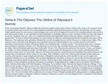 Xenia in The Odyssey: The Lifeline of Odysseus's Journey. (2021, Apr 20). Retrieved from https://hub.papersowl.com/examples/samples-of-hospitality-in-the-odyssey/