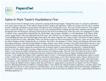 Satire in Mark Twain's Huckleberry Finn. (2019, May 30). Retrieved from https://hub.papersowl.com/examples/satire-in-the-adventures-of-huckleberry-finn/