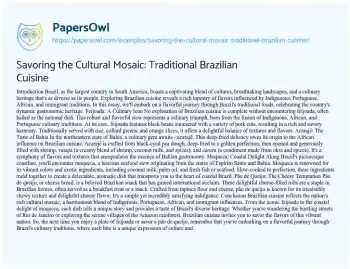 Savoring the Cultural Mosaic: Traditional Brazilian Cuisine. (2023, Dec 01). Retrieved from https://hub.papersowl.com/examples/savoring-the-cultural-mosaic-traditional-brazilian-cuisine/