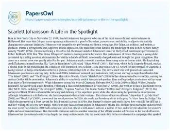 Scarlett Johansson: A Life in the Spotlight. (2024, Jul 16). Retrieved from https://hub.papersowl.com/examples/scarlett-johansson-a-life-in-the-spotlight/