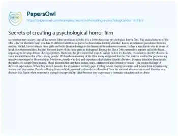 Secrets of creating a psychological horror film. (2022, Nov 14). Retrieved from https://hub.papersowl.com/examples/secrets-of-creating-a-psychological-horror-film/