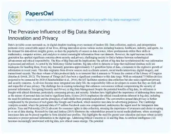 The Pervasive Influence of Big Data: Balancing Innovation and Privacy. (2021, Oct 16). Retrieved from https://hub.papersowl.com/examples/security-and-privacy-with-big-data-management/
