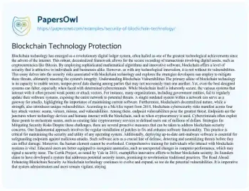Blockchain Technology Protection. (2020, May 13). Retrieved from https://hub.papersowl.com/examples/security-of-blockchain-technology/