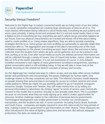 Security Versus Freedom?. (2021, May 10). Retrieved from https://hub.papersowl.com/examples/security-versus-freedom/