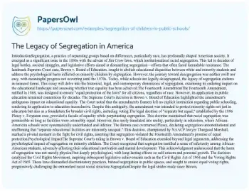 The Legacy of Segregation in America. (2021, Apr 29). Retrieved from https://hub.papersowl.com/examples/segregation-of-children-in-public-schools/