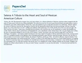 Selena: A Tribute to the Heart and Soul of Mexican American Culture. (2023, Dec 28). Retrieved from https://hub.papersowl.com/examples/selena-a-tribute-to-the-heart-and-soul-of-mexican-american-culture/