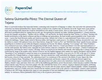 Selena Quintanilla-Pérez: The Eternal Queen of Tejano. (2023, Oct 30). Retrieved from https://hub.papersowl.com/examples/selena-quintanilla-perez-the-eternal-queen-of-tejano/