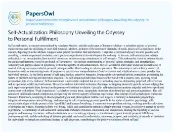 Self-Actualization: Philosophy Unveiling the Odyssey to Personal Fulfillment. (2024, Feb 01). Retrieved from https://hub.papersowl.com/examples/self-actualization-philosophy-unveiling-the-odyssey-to-personal-fulfillment/
