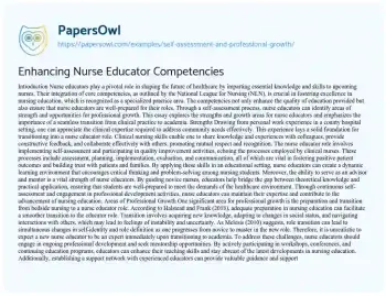 Enhancing Nurse Educator Competencies. (2019, May 22). Retrieved from https://hub.papersowl.com/examples/self-assessment-and-professional-growth/