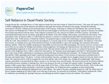Self Reliance in Dead Poets Society. (2021, May 04). Retrieved from https://hub.papersowl.com/examples/self-reliance-in-dead-poets-society/