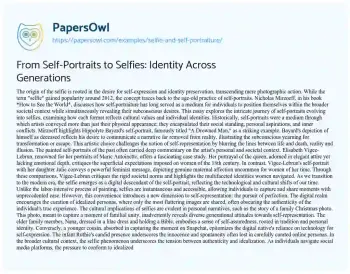 From Self-Portraits to Selfies: Identity Across Generations. (2020, Jan 04). Retrieved from https://hub.papersowl.com/examples/selfie-and-self-portraiture/