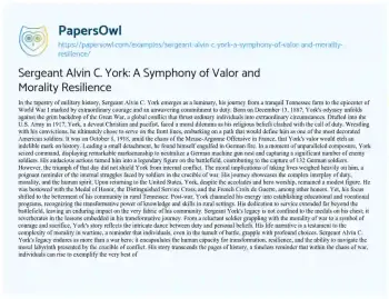 Sergeant Alvin C. York: A Symphony of Valor and Morality Resilience. (2024, Jan 26). Retrieved from https://hub.papersowl.com/examples/sergeant-alvin-c-york-a-symphony-of-valor-and-morality-resilience/