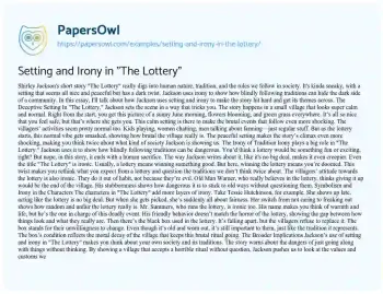Setting and Irony in "The Lottery". (2024, Sep 17). Retrieved from https://hub.papersowl.com/examples/setting-and-irony-in-the-lottery/