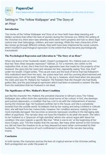 Setting in 'The Yellow Wallpaper' and 'The Story of an Hour. (2023, Aug 05). Retrieved from https://hub.papersowl.com/examples/setting-in-the-yellow-wallpaper-and-the-story-of-an-hour/