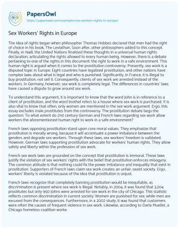 Sex Workers’ Rights in Europe. (2021, Mar 20). Retrieved from https://hub.papersowl.com/examples/sex-workers-rights-in-europe/