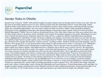 Gender Roles in Othello. (2021, Feb 25). Retrieved from https://hub.papersowl.com/examples/sexism-in-shakespeares-play-othello/