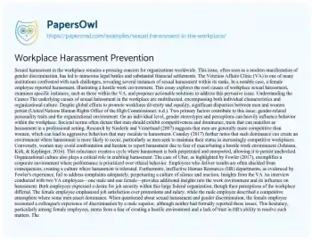 Workplace Harassment Prevention. (2022, Jun 29). Retrieved from https://hub.papersowl.com/examples/sexual-harassment-in-the-workplace/