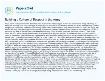 Building a Culture of Respect in the Army. (2020, Jan 17). Retrieved from https://hub.papersowl.com/examples/sexual-violence-in-the-military/