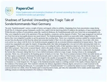 Shadows of Survival: Unraveling the Tragic Tale of Sonderkommando Nazi Germany. (2023, Dec 28). Retrieved from https://hub.papersowl.com/examples/shadows-of-survival-unraveling-the-tragic-tale-of-sonderkommando-nazi-germany/