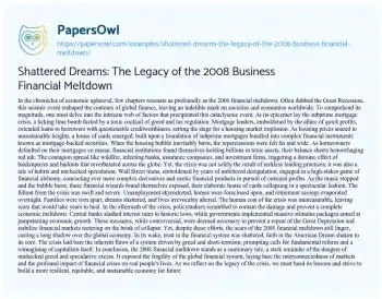 Shattered Dreams: The Legacy of the 2008 Business Financial Meltdown. (2024, May 12). Retrieved from https://hub.papersowl.com/examples/shattered-dreams-the-legacy-of-the-2008-business-financial-meltdown/