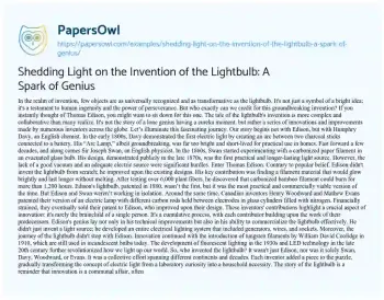 Shedding Light on the Invention of the Lightbulb: A Spark of Genius. (2024, Jan 26). Retrieved from https://hub.papersowl.com/examples/shedding-light-on-the-invention-of-the-lightbulb-a-spark-of-genius/