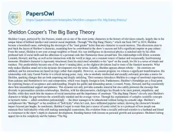 Sheldon Cooper's The Big Bang Theory. (2024, Apr 14). Retrieved from https://hub.papersowl.com/examples/sheldon-coopers-the-big-bang-theory/