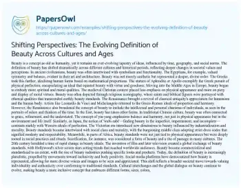 Shifting Perspectives: The Evolving Definition of Beauty Across Cultures and Ages. (2024, May 12). Retrieved from https://hub.papersowl.com/examples/shifting-perspectives-the-evolving-definition-of-beauty-across-cultures-and-ages/