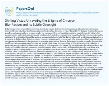 Shifting Vistas: Unraveling the Enigma of Chroma-Blur Racism and Its Subtle Oversight. (2023, Dec 01). Retrieved from https://hub.papersowl.com/examples/shifting-vistas-unraveling-the-enigma-of-chroma-blur-racism-and-its-subtle-oversight/