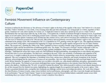 Feminist Movement Influence on Contemporary Culture. (2020, Dec 18). Retrieved from https://hub.papersowl.com/examples/short-essay-on-feminism/