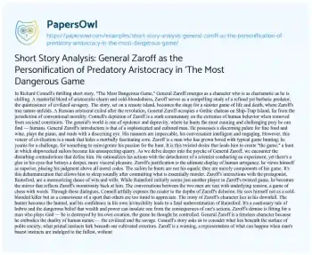 Short Story Analysis: General Zaroff as the Personification of Predatory Aristocracy in 'The Most Dangerous Game. (2023, Nov 17). Retrieved from https://hub.papersowl.com/examples/short-story-analysis-general-zaroff-as-the-personification-of-predatory-aristocracy-in-the-most-dangerous-game/
