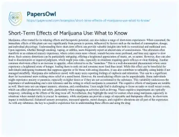 Short-Term Effects of Marijuana Use: What to Know. (2024, Jul 21). Retrieved from https://hub.papersowl.com/examples/short-term-effects-of-marijuana-use-what-to-know/