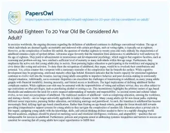 Should Eighteen To 20 Year Old Be Considered An Adult?. (2024, Apr 07). Retrieved from https://hub.papersowl.com/examples/should-eighteen-to-20-year-old-be-considered-an-adult/