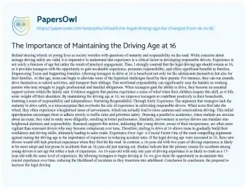 The Importance of Maintaining the Driving Age at 16. (2021, Mar 25). Retrieved from https://hub.papersowl.com/examples/should-the-legal-driving-age-be-changed-from-16-to-18/