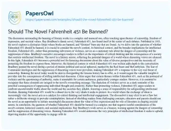 Should The Novel Fahrenheit 451 Be Banned?
