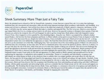 In conclusion, Shrek is a film that goes beyond the surface of a typical fairy tale and delves into deeper themes of acceptance, individuality, and friendship. Through its engaging plot, memorable characters, and thought-provoking messages, Shrek has become a beloved classic that continues to resonate with audiences of all ages. As a student and movie enthusiast, I am inspired by the timeless lessons that Shrek imparts and the impact it has had on shaping my understanding of acceptance and self-identity.