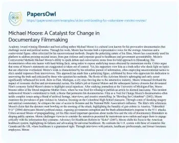 Michael Moore: A Catalyst for Change in Documentary Filmmaking. (2022, Apr 29). Retrieved from https://hub.papersowl.com/examples/sicko-and-bowling-for-columbine-movies-review/