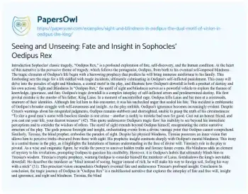 Seeing and Unseeing: Fate and Insight in Sophocles' Oedipus Rex. (2023, Aug 29). Retrieved from https://hub.papersowl.com/examples/sight-and-blindness-in-oedipus-the-dual-motif-of-vision-in-oedipus-the-king/