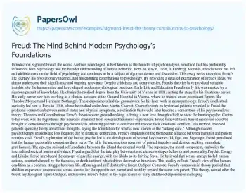Freud: The Mind Behind Modern Psychology's Foundations. (2020, Mar 31). Retrieved from https://hub.papersowl.com/examples/sigmund-freud-life-theory-contributions-to-psychology/