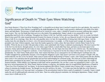 This essay will explore the significance of death in Zora Neale Hurston’s “Their Eyes Were Watching God.” It will discuss how characters’ encounters with death shape the protagonist Janie’s journey towards self-realization and independence. The piece will examine how death is portrayed as a transformative experience in the context of love, loss, and liberation. Moreover, at PapersOwl, there are additional free essay samples connected to Death.