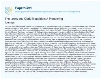 The Lewis and Clark Expedition: A Pioneering Journey. (2020, Jan 15). Retrieved from https://hub.papersowl.com/examples/significance-of-the-lewis-and-clark-expedition/