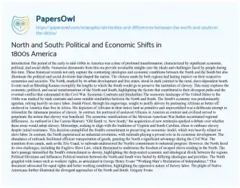 North and South: Political and Economic Shifts in 1800s America. (2023, Aug 31). Retrieved from https://hub.papersowl.com/examples/similarities-and-differences-between-the-north-and-south-in-the-1800s/