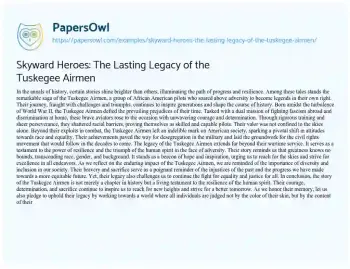 Skyward Heroes: The Lasting Legacy of the Tuskegee Airmen. (2024, Mar 25). Retrieved from https://hub.papersowl.com/examples/skyward-heroes-the-lasting-legacy-of-the-tuskegee-airmen/
