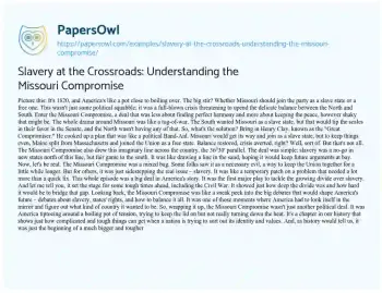 Slavery at the Crossroads: Understanding the Missouri Compromise. (2024, Feb 01). Retrieved from https://hub.papersowl.com/examples/slavery-at-the-crossroads-understanding-the-missouri-compromise/