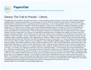 Slavery: The Trail to Pseudo – Liberty. (2021, Mar 25). Retrieved from https://hub.papersowl.com/examples/slavery-the-trail-to-pseudo-liberty/