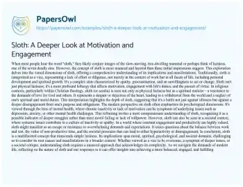Sloth: A Deeper Look at Motivation and Engagement. (2024, Mar 18). Retrieved from https://hub.papersowl.com/examples/sloth-a-deeper-look-at-motivation-and-engagement/