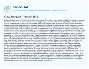 This essay explores the social hierarchies of these ancient civilizations, comparing their structures and reflecting on the concept of class struggles, both in historical contexts and their implications for modern society.