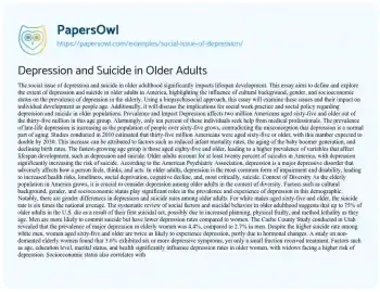 Depression and Suicide in Older Adults. (2020, Feb 24). Retrieved from https://hub.papersowl.com/examples/social-issue-of-depression/